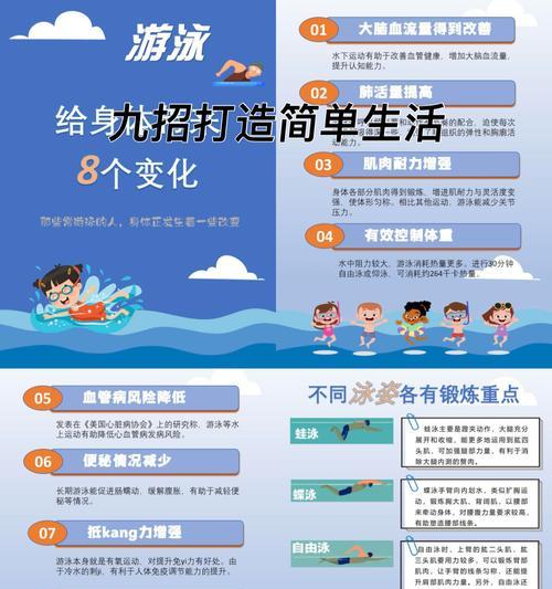 游泳须知小技巧——享受水中乐趣的秘诀 游泳是一项健康又有趣的运动,不仅可以锻炼身体,还能让人享受到水中的乐趣。然而,对于初学者来说,游泳可能会带来一些挑战和困惑。在本文中,我们将分享一些游泳的须知小技巧,帮助您更好地掌握游泳技巧,尽情享受水中乐趣。 一、正确的呼吸姿势——稳定呼吸、更长时间游泳 正确的呼吸姿势是游泳中至关重要的一环,关键...